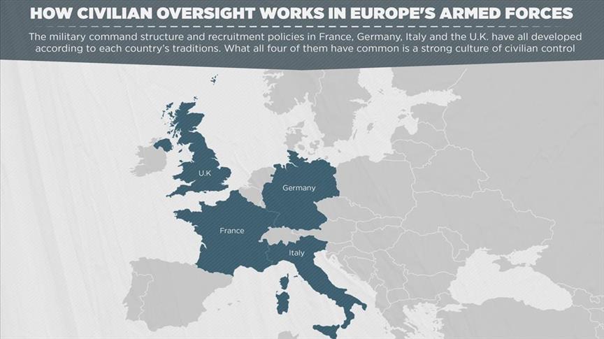 The armed forces defending Europe’s largest countries, which are all subject to extensive civilian oversight, could serve as a model as Turkey’s armed forces are restructured after last month’s coup attempt.