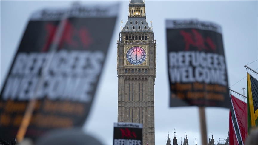 Protesters chanted slogans defending the rights of refugees and immigrants, carrying banners that said: "Stop the bill, care for refugees," "Migrants and refugees welcome here," "No human is illegal, oppose the illegal migration bill," and “Safe passage, not Rwanda flights."