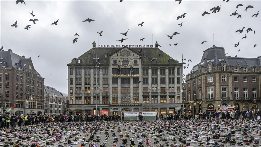 They later marched to Dam Square, the protest endpoint, and placed thousands of pairs of children's shoes and read out their names and ages.