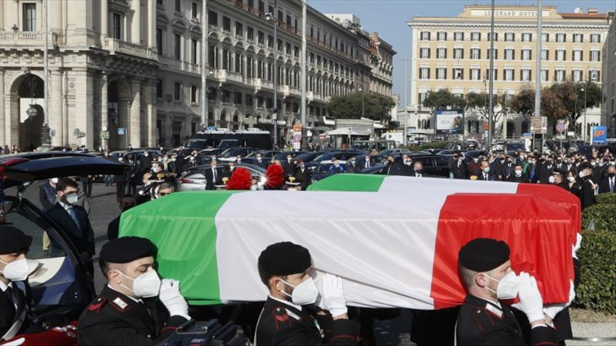 Cardinal Angelo De Donatis, the pope’s vicar for Rome, presided over the solemn funeral at the Basilica of Santa Maria degli Angeli, which was attended by Italy’s Premier Mario Draghi along with top civil and military authorities.