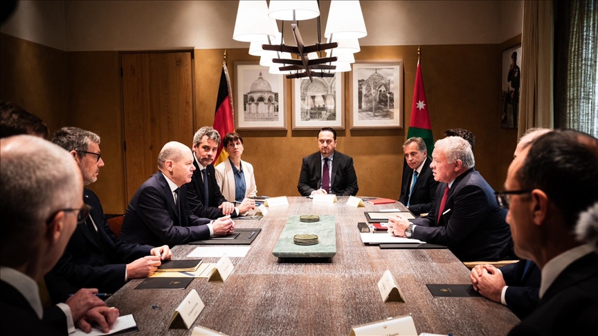 Jordanian King Abdullah II held talks with German Chancellor Olaf Scholz in the Red Sea port city of Aqaba to discuss developments in Gaza, the royal court said in a statement.