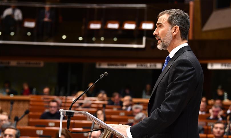 King Felipe VI, currently on a three-day state visit to the U.K. with Queen Letiza, addressed peers and MPs at the House of Commons.