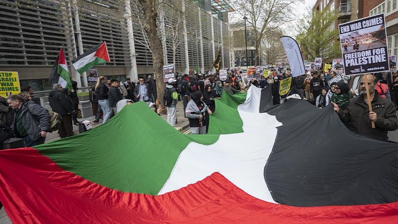 A mass rally was held in central London on Sunday to protest Israel's "apartheid policies" against Palestinians.