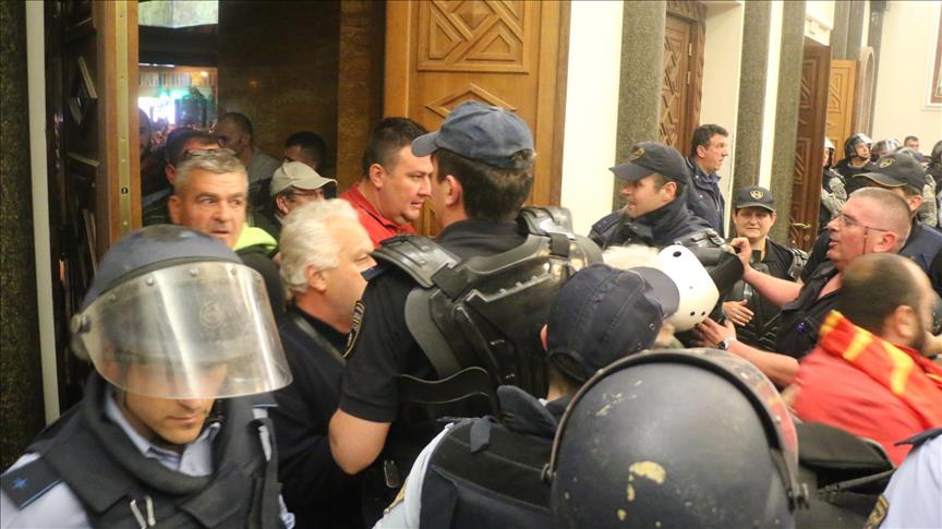 The protesters demonstrating in front of the parliament building in the capital Skopje stormed the building after ethnic Albanian Talat Xhaferi was elected as the speaker of parliament.