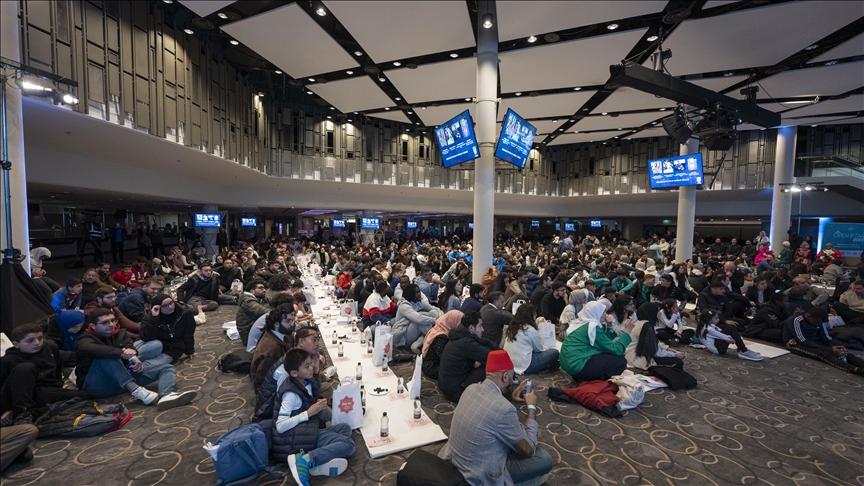 Hundreds gathered Saturday at Wembley Stadium in London for an open iftar, or fast-breaking meal, during the Muslim holy month of Ramadan.