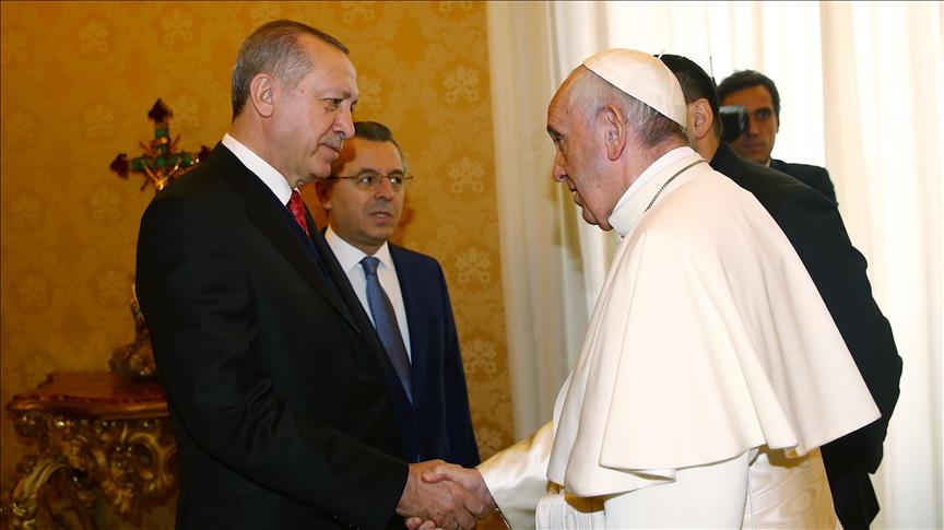 Following the official ceremony, Erdogan was welcomed by Pope Francis ahead of their one-on-one meeting at the doorsteps of Apostolic Palace.