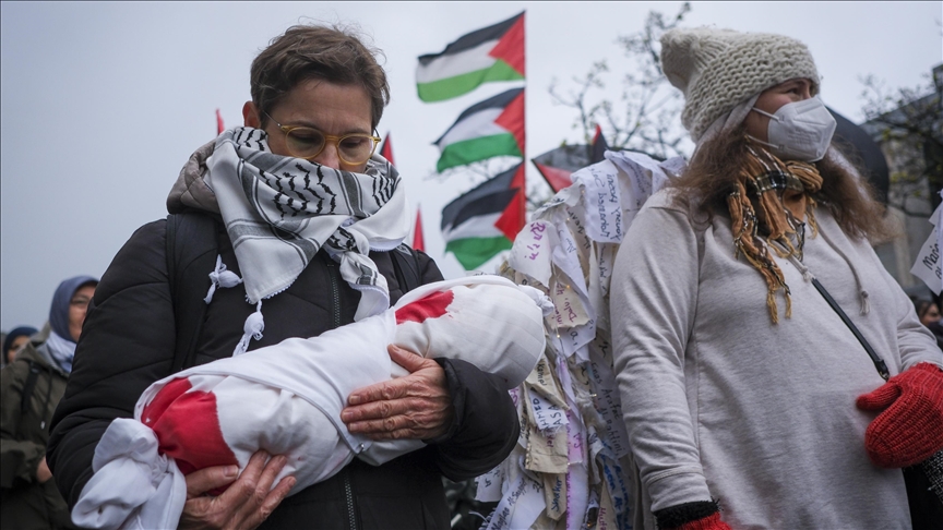 "Everyone with common sense should participate in this demonstration. We cannot remain silent in the face of such blatant genocide. People don't even have the opportunity to flee. That's why being here is my civic duty," Ellenora, who preferred not to give her last name, told Anadolu.