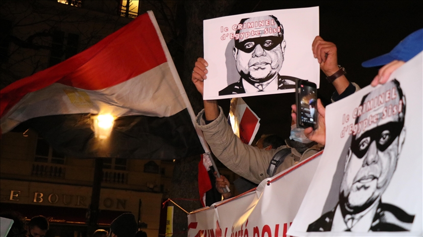 Demonstrators and human rights activists stood outside France’s National Assembly building late Tuesday in protest against President Emmanuel Macron's welcoming of Egyptian President Abdel Fattah al-Sisi on a three-day state visit.