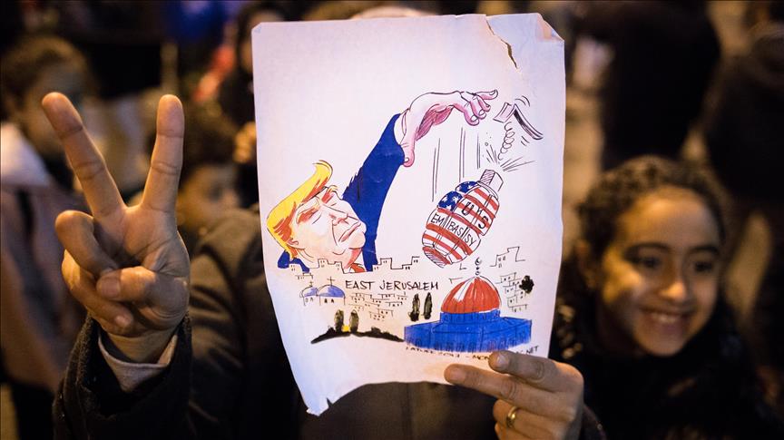 “We are protesting against Trump’s decision. We demand an independent Palestinian state with East Jerusalem as its capital city. We also demand that NATO bases be removed from Greece. They are used to facilitate the killing of the people in the Middle East,” one of the protesters told Anadolu Agency.