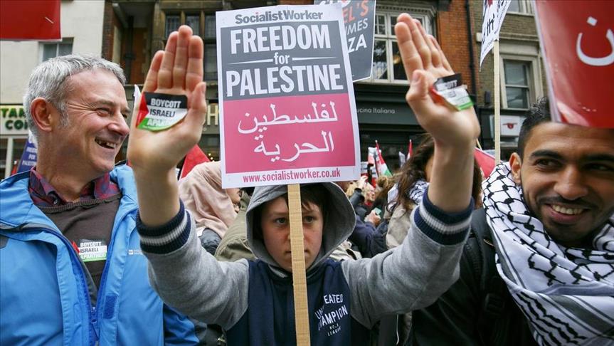 Various groups, namely Friends of Al-Aqsa, Palestinian Forum in Britain, Muslim Association of Britain and Stop the War Coalition, organized the three-hour rally attended by thousands.