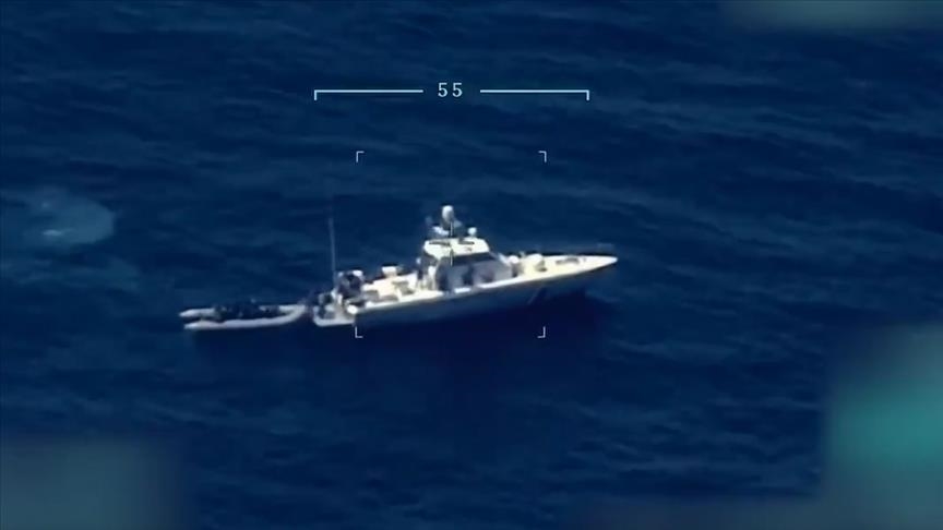 An unmanned aerial vehicle of the Turkish Naval Forces Command recorded during its reconnaissance and surveillance activities that Greek Coast Guard boats pushed asylum seekers into Turkish territorial waters.