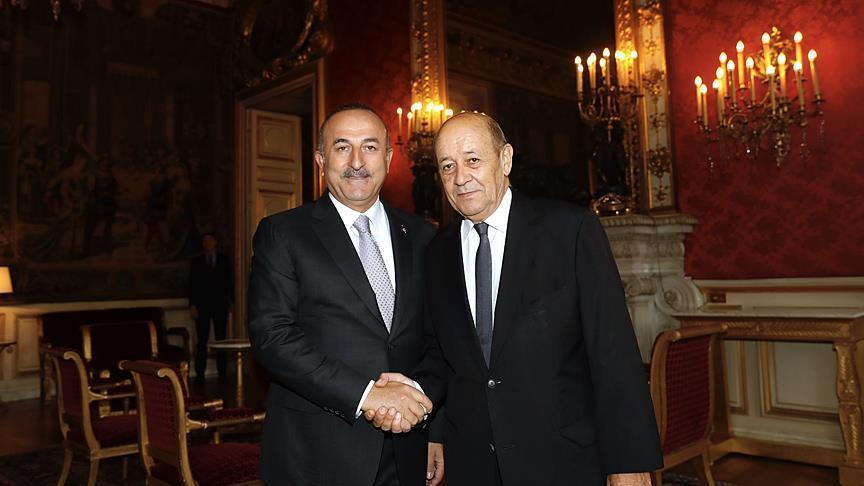 Turkish Foreign Minister Mevlut Cavusoglu on Sunday met his French counterpart Jean-Yves Le Drian in Paris, a Turkish diplomatic source said.