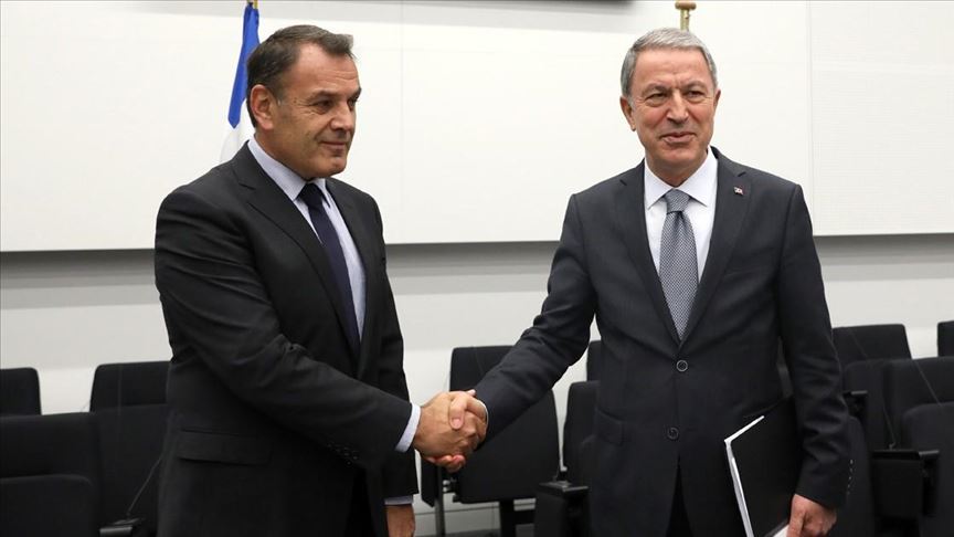 Turkish Defense Minister Hulusi Akar and his Greek counterpart Nikos Panagiotopoulos met Wednesday in Brussels and agreed to hold talks later this month on confidence-building measures.