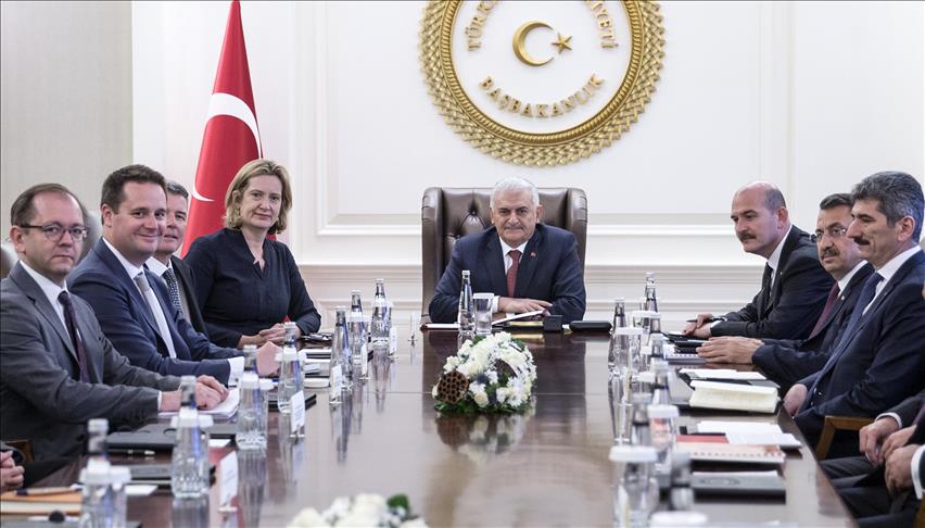 Turkish Prime Minister Binali Yildirim met British Home Secretary Amber Rudd at the Cankaya Palace in Ankara on Thursday.