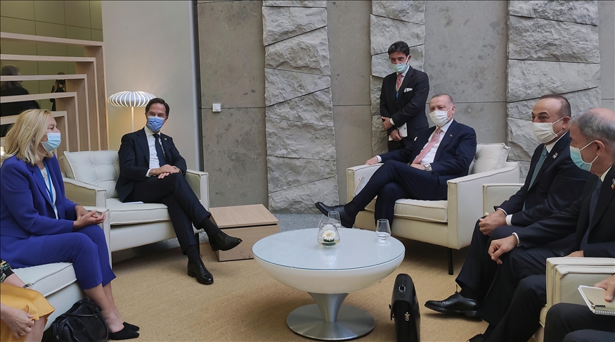 Turkish President Recep Tayyip Erdogan met Dutch Prime Minister Mark Rutte on Monday on sidelines of the NATO summit in Brussels.