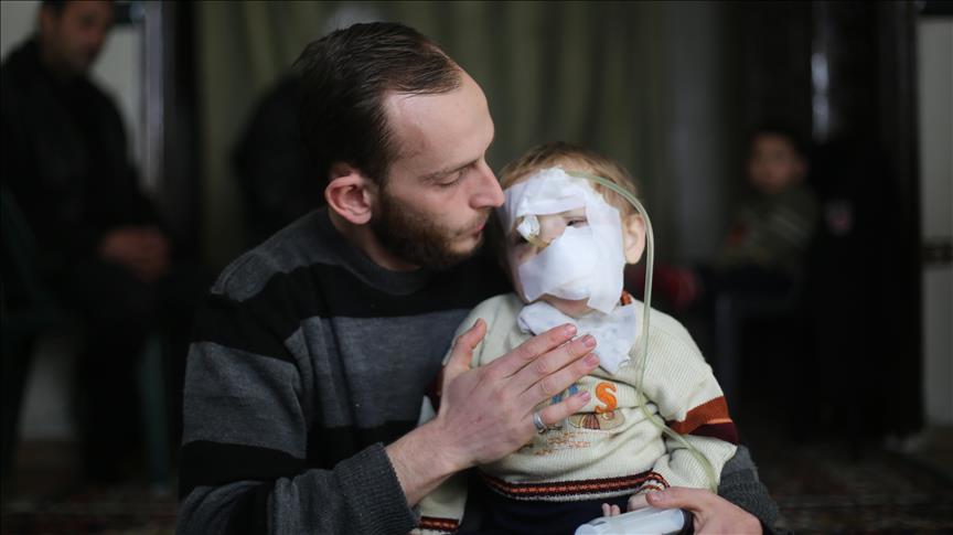 Two-year-old Qasim in Syria was left orphan after his mother died in an airstrike conducted by Bashar al-Assad’s regime in Hammuriyah district of besieged Eastern Ghouta.