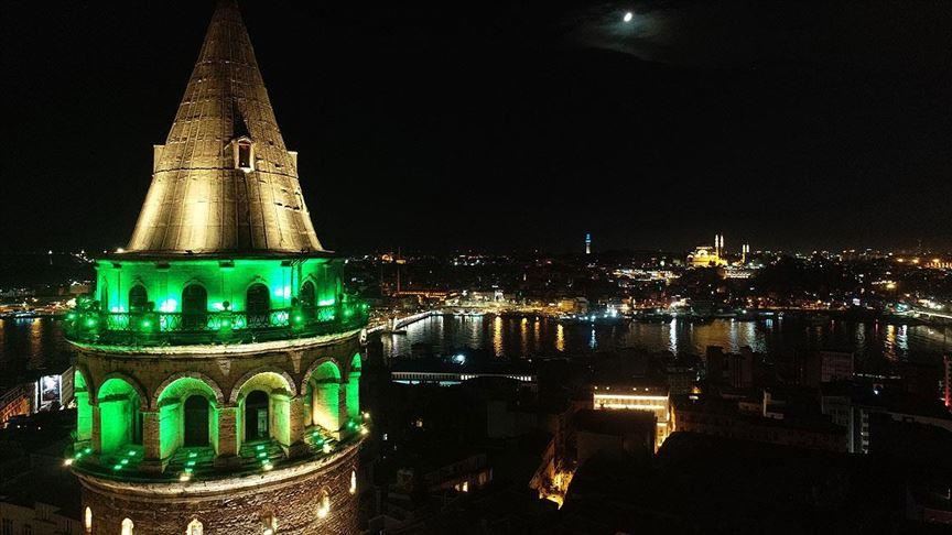 Istanbul shone green on Sunday to mark World Cerebral Palsy Day and raise awareness of the neurological disorder.