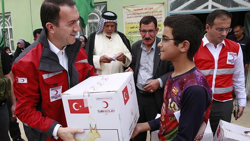 “Ten tons of potatoes, 800 liters of cooking oil and three tons of rice were distributed among civilian residents of both districts,” Serdar Yilmaz, head of the TRC’s mission in Iraq, told Anadolu Agency.