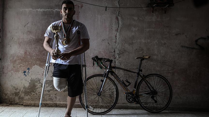 The Palestinian biker spent two days in intensive care and underwent eight operations in an effort to save his future career but all in vain that amputation was the only option.