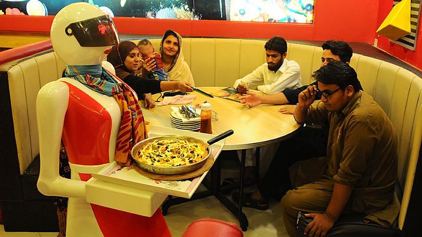 Although robotics is an early stage in a third-world country like Pakistan, there is a restaurant where robots walk and serve the customers instead of human waiters.