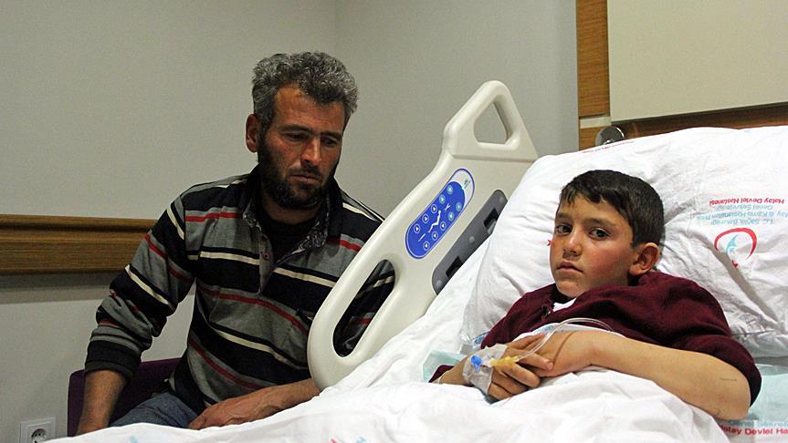 A 10-year-old child who lost his legs in a helicopter attack carried out by Syrian regime forces is now receiving medical treatment in Turkey's southern Hatay province.