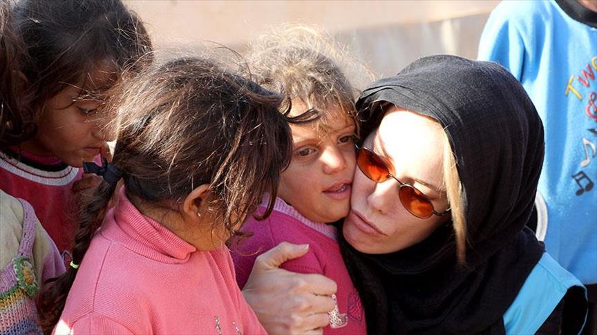Well-known Turkish actress Gamze Ozcelik visited a refugee camp in Syria’s northern Idlib province as part of a Turkish charity project in which she is participating.