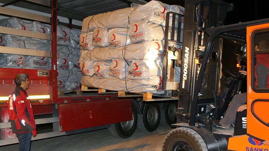 An official of the Turkish Red Crescent told Anadolu Agency in the northern Iraqi city of Erbil that a total of 18 trucks loaded with blankets, tents and food supplies had reached the city.