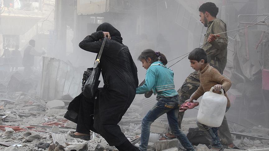 Najib Ensari, an Aleppo-based official, told Anadolu Agency that 14 others were injured when a Syrian army jet shelled civilians fleeing their homes in Aleppo's eastern conflict-ridden areas to the al-Shear neighborhood.