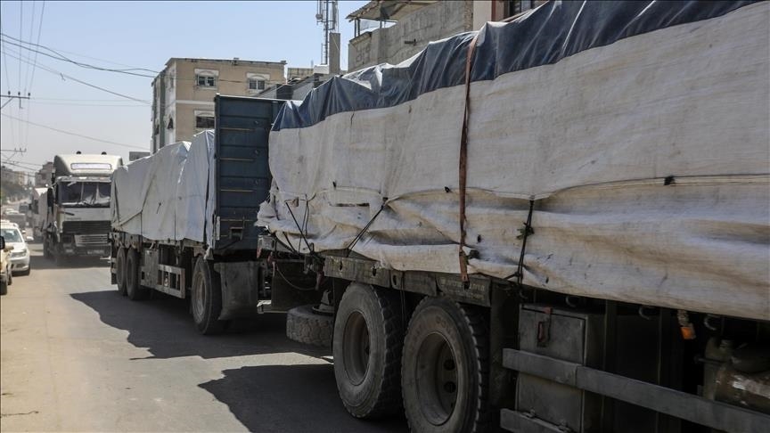 “Scores of aid trucks have arrived from the Egyptian side to the Karam Abu Salem (Kerem Shalom) crossing,” the official told Anadolu.