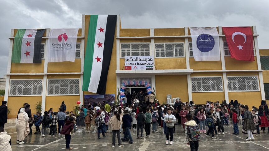 The school in the town of Muhambil was repaired following the fall of the Bashar al-Assad regime through cooperation between the Asma Kopru International Student Association and the Sefire-i Alem International Student Association.