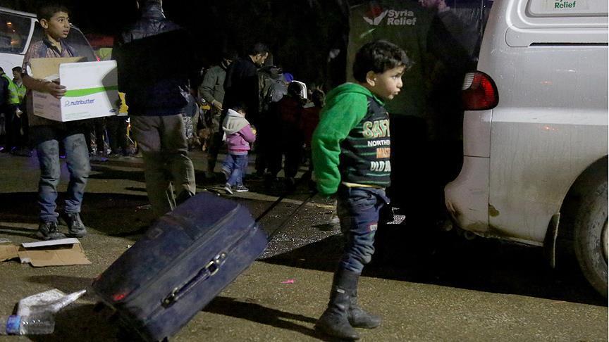 According to Anadolu Agency correspondents based in the area, evacuees were taken from the towns of Arbin, Zamalka and Ain Tarma.