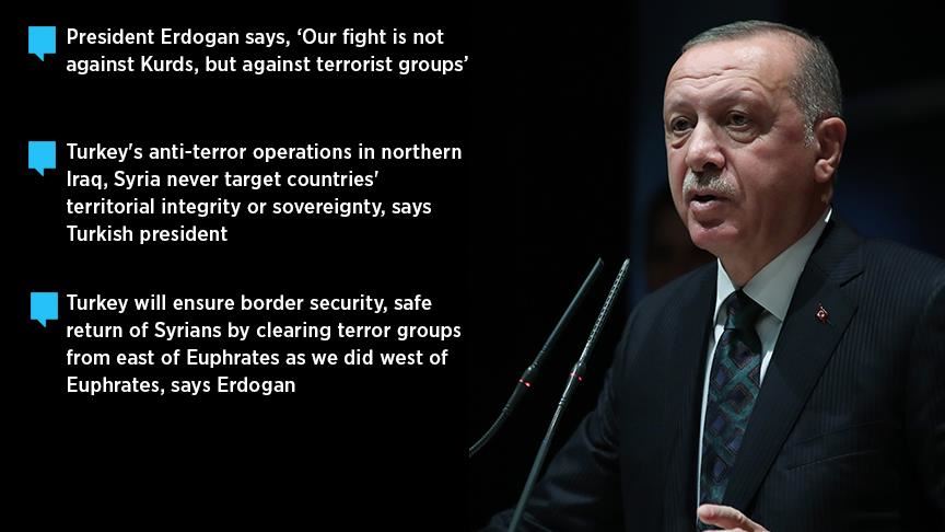 "Turkey will ensure its border security and the safe return of Syrians by clearing terrorist groups from east of the Euphrates River as we did with west of the Euphrates," said Erdogan, referring to previous anti-terror operations since 2016.