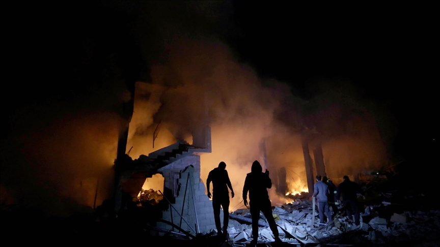Israeli forces bombed humanitarian aid warehouses on the Palestinian side of the Rafah border crossing with Egypt, according to an Anadolu reporter.