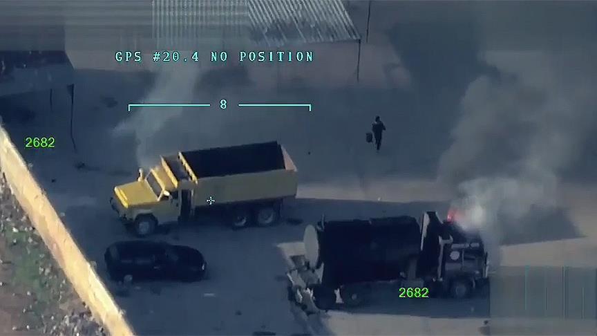 Footage captured by a Turkish army drone shows YPG/PKK terrorists setting vehicles on fire in Afrin city center, northwestern Syria.