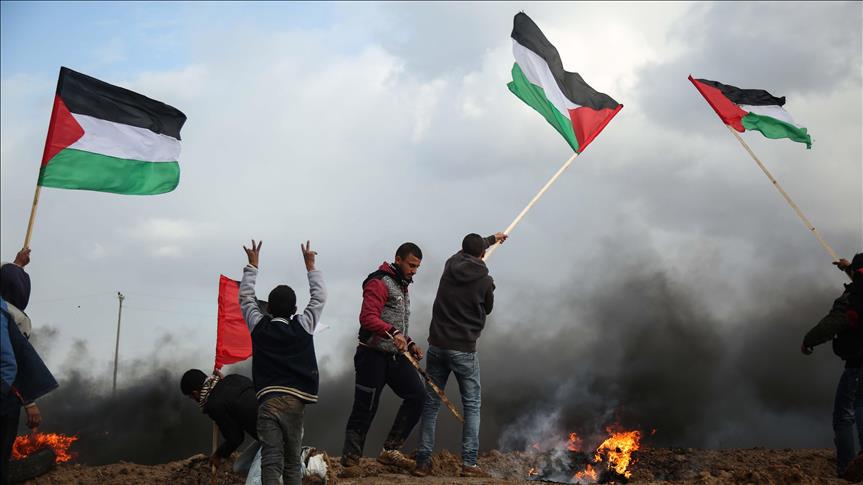 Dozens of Palestinian youths threw stones at Israeli soldiers stationed on the other side of the border, while the latter responded with teargas, rubber bullets and live ammunition.