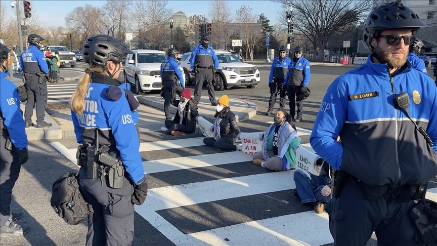 One of the protesters at the transport hub, Sean Blackmon, told Anadolu that every year, billions of US taxpayers’ dollars go to fund Israel's "facilitated genocide" of Palestinians.