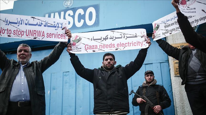 Employees of UN refugee agency UNRWA staged a demonstration in the Gaza Strip on Monday to protest recent U.S. funding cuts.