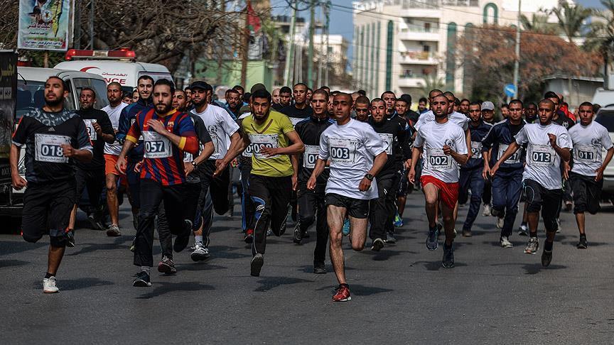 Scores of Palestinians took part in a marathon across in the Gaza Strip on Monday in solidarity with Palestinian prisoners in Israeli jails.