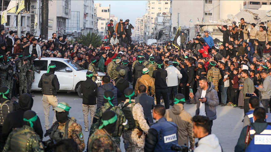 Witnesses told Anadolu that dozens of members from the Al-Qassam Brigades and Al-Quds Brigades were deployed at Palestine Square in Gaza City, alongside thousands of Palestinians, in preparation for the handover of Israeli hostages.