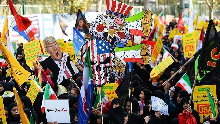 Iranian protesters staged rallies against the U.S. in the capital Tehran on Sunday, which marks 39th anniversary of the capture of the U.S. Embassy in 1979.