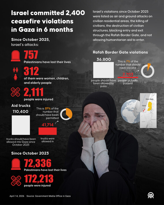 Israel committed 2,400 ceasefire violations in Gaza in 6 months