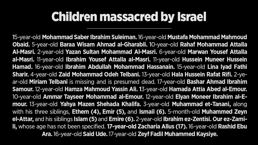 Two more Palestinian children -- 4-year-old Zaid Mohammad Odeh Telbani and 13-year-old Hala Hussein Rafat Rifi -- were killed in an overnight Israeli airstrike in Gaza, when an Israeli warplane targeted the Salha residential building in the Tal Al-Hawa neighborhood.