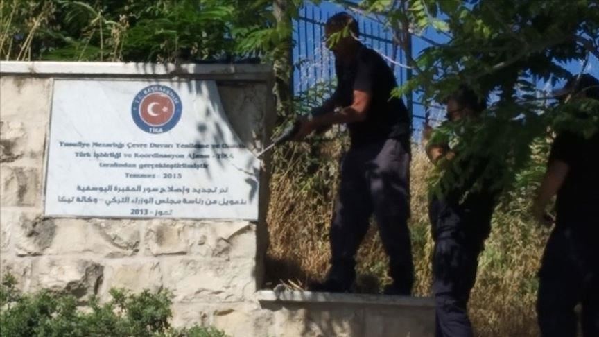 The plaque marked the completion of a Turkish Cooperation and Coordination Agency (TIKA) restoration project at Yusufiye Cemetery, one of the oldest Muslim graveyards in occupied Jerusalem, and had been there for 10 years before Israeli officials removed it on Wednesday.