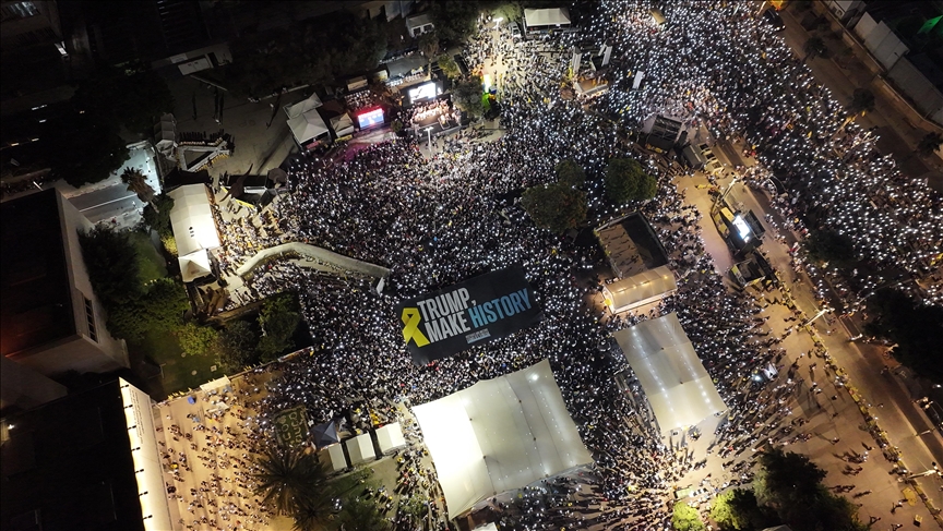 Protesters gathered in Tel Aviv displayed banners that read: "Trump, make history!" appealing to US President Donald Trump to facilitate a ceasefire and prisoner exchange deal.
