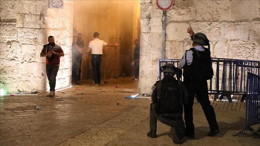 Israeli police attempted to disperse worshippers inside the Al-Aqsa Mosque compound Friday evening, using stun grenades and gas bombs.