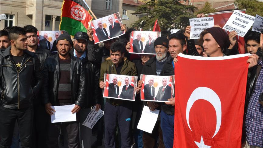 They were raising Turkish and Afghan flags, posters of Turkish President Recep Tayyip Erdogan and Afghan First Deputy President Rashid Dostum and chanting slogans in support of Operation Olive Branch.