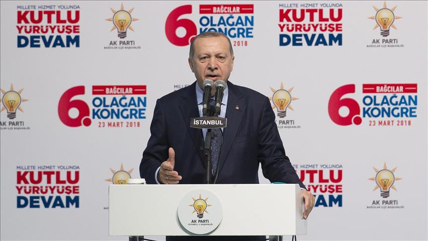 In a separate address at Beyoglu district congress, Erdogan said: “As of now, 3,732 terrorists have been neutralized in Afrin and Sinjar [northern Iraq].”
