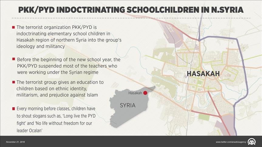 The PYD, an offshoot of the PKK terrorist group, has been doing strict indoctrination of primary school children in the northeastern Hasakah region, where the group silenced opposition groups by threats and force of arms, said the educators, who asked not be named due to security concerns.