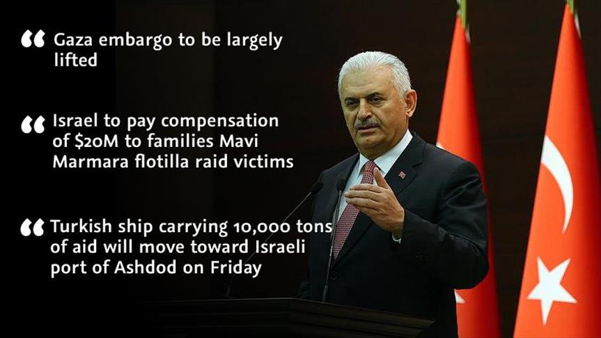 The official said that Israel accepted a number of Turkish requests side, including compensation and Turkey’s humanitarian presence in the Gaza Strip, which has been under Israeli blockade since 2007.
