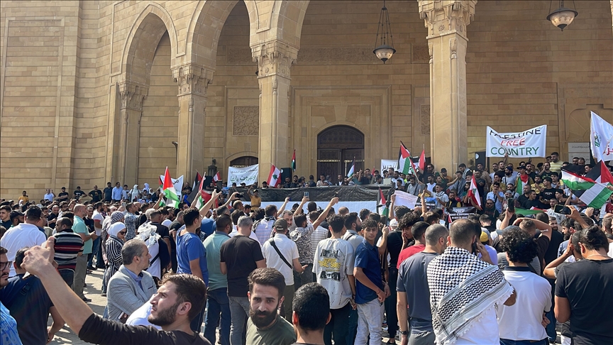 The protesters raised slogans in solidarity with Gaza and against the displacement of Palestinians from the besieged city.